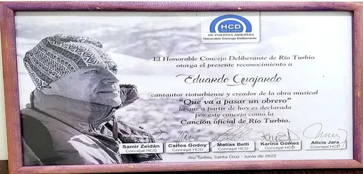 Hoy se llevó a cabo la 7ma Sesión Ordinaria del Honorable Concejo Deliberante de Rio Turbio, en la cual, la Edil Alicia Jara, presentó un Proyecto donde se declaró Oficialmente canción de la ciudad, la obra del Cantautor Eduardo Guajardo, titulada "QUE VA A PASAR UN OBRERO".