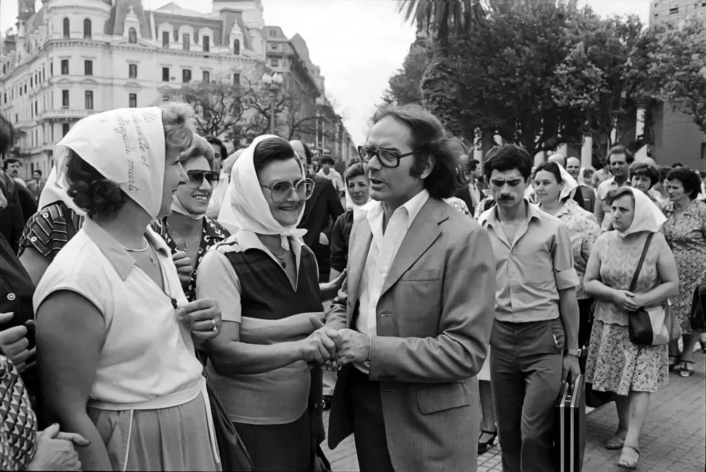 - Télam Buenos Aires, Adolfo Perez Esquivel y Madres de Plaza de mayo en la Marcha de la Resistencia 10/12/81. Foto: Archivo Télam/lra