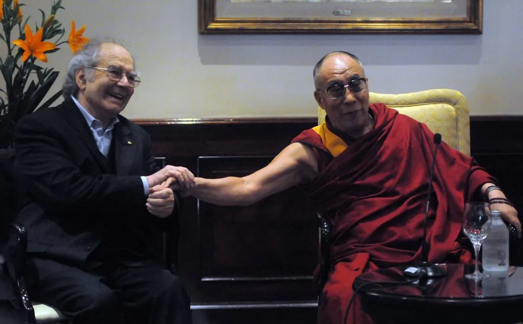 - Télam Buenos Aires 13/09/2011 El Dalai Lama, jefe espiritual del budismo tibetano, en Argentina por cuarta vez y hará dos presentaciones en la Ciudad de Buenos Aires. Mientras en la mañana brindó una conferencia de prensa, acompañado por el Nóbel de la Paz, Adolfo Perez Esquivel. Foto: Sergio Quinteros/Télam/cb