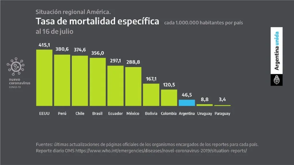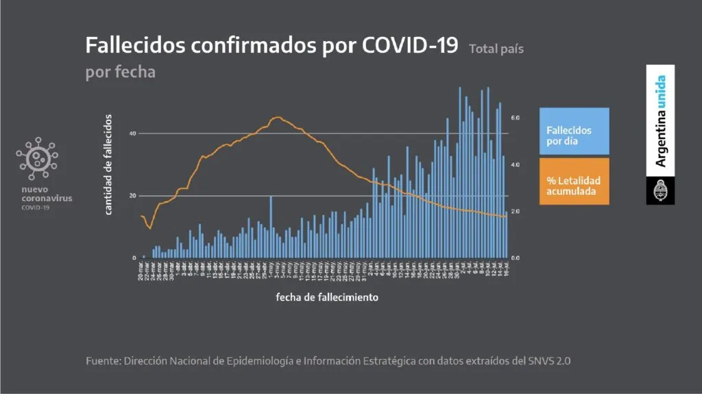 En ese marco sostuvo que "todo tuvo sentido; nada fue inútil; fue muy importante el esfuerzo", al mostrar la baja tasa de letalidad del virus en la Argentina, y afirmó que si bien "ha habido un pico de crecimiento de muertes por coronavirus, se da ahora un leve descenso que nos da cierto ánimo".