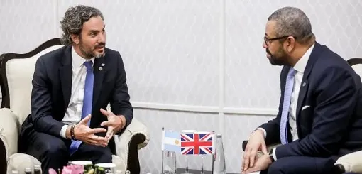 El canciller argentino Santiago Cafiero se reunió con su par britanico James Cleverly, en Nueva Delhi, y le planteó esos dos temas sobre las Islas Malvinas, usurpadas por los británicos en 1833.
