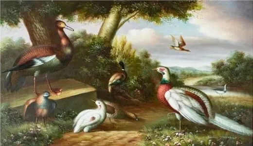 "Pájaros en un paisaje" - Melchior van Hondecoeter