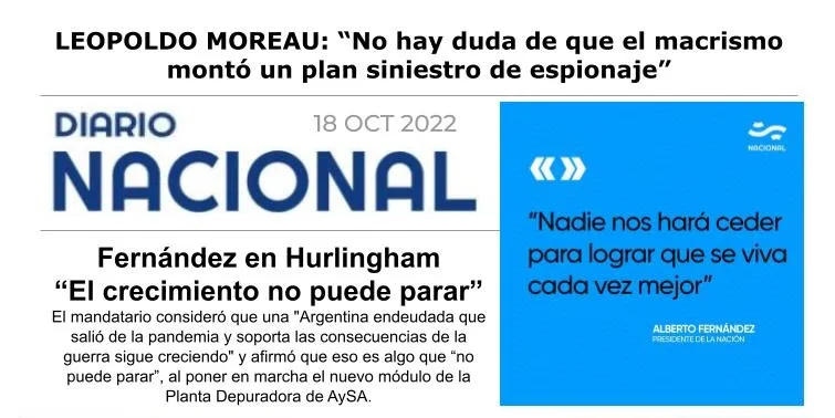 “Desde el Frente de Todos lo venimos denunciando desde que éramos oposición. Y una vez en el Gobierno lo pudimos comprobar más fehacientemente: tenemos la filmación del seguimiento que le hicieron al periodista Alconada Mon. Era un Estado mafioso”, agregó Moreau.