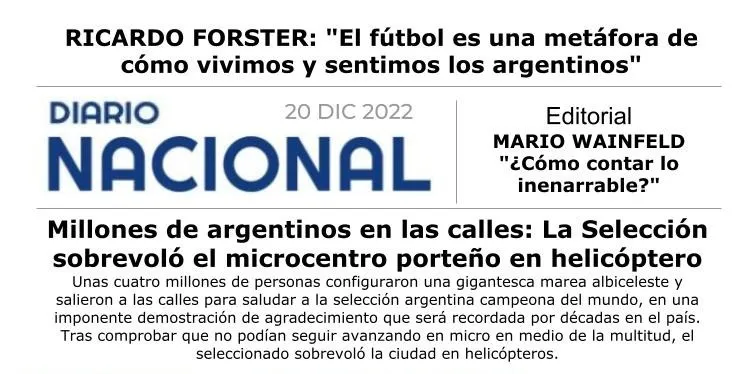El periodista y escritor reflexionó sobre la obtención del Tercer Campeonato del Mundo por parte de la Selección Nacional en Qatar 2022 y la alegría que desborda a todo el país por este triunfo.