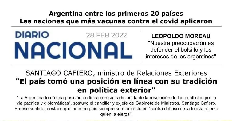 "La Argentina tomó una posición en línea con su tradición: la de la resolución de los conflictos por la vía pacífica y diplomáticas", sostuvo el canciller y exjefe de Gabinete de Ministros, Santiago Cafiero.
