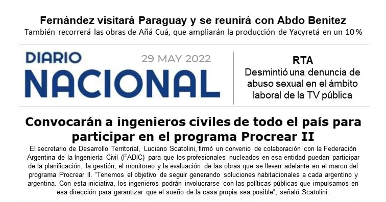 LRA 1 Buenos Aires - Obras de Aná Cuá - Fernández visitará mañana Paraguay y mantendrá una reunión bilateral con Abdo Benítez