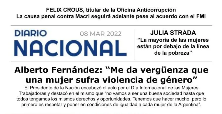 Todos los 8 de marzo se conmemora en el mundo la lucha de las mujeres por la igualdad, el reconocimiento y ejercicio efectivo de sus derechos. Este año el movimiento Ni Una Menos convocó a paro y movilización feminista bajo la consigna "La deuda es con nosotres y nosotras. ¡Que la paguen los que la fugaron!".