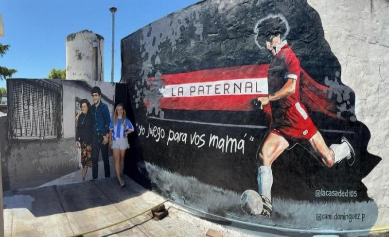 Natu Maderna, Leo Acevedo y Horacio Marmurek conversaron con la artista Camila Domínguez que realizó el mural del diez en La Casa de D10s (la primera casa propia que tuvo Diego en Buenos Aires) y que cuenta con la imagen de Doña Tota a su lado.