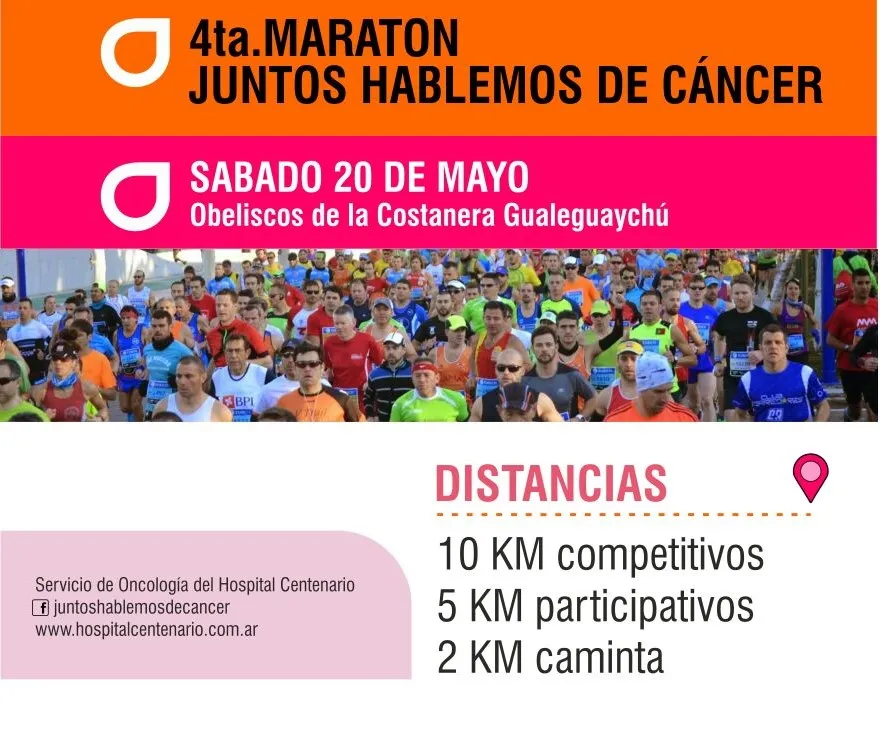 En el marco de la Semana Juntos Hablemos de Cáncer, desde las 15, en los Obeliscos de Costanera se iniciará la cuarta maratón del Hospital Centenario.