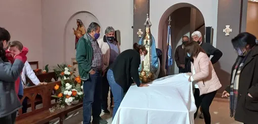 Finalmente se realizó esta tarde la ceremonia de asunción de José Díaz como nuevo Obispo de Concepción, y en relación a toda la ornamentación y vestir a la imagen de la Inmaculada Concepción, se encargaron dos tipos de flores. “La preparación para realizar lo que hacemos todos los años siempre que la virgen nos convoca venimos a ornamentarla. Nos ocupamos de encargar las flores, de buscar los elementos y la estructura para realizarlo. En este momento vamos a trabajar con gerberas y con crisantemos. Son muchas docenas de gerberas, completando con los crisantos, para hacer diseños y todos los verdes que utilizamos para hacer la base. Siempre tratamos de ir variando los colores y buscar flores diferentes de acuerdo a lo que conseguimos por la época”, confirmó Laura Gasco, encargada de vestir a la imagen de la virgen.