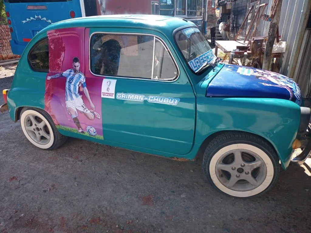 La pasión por la selección argentina de fútbol también se vive en la patagónica Chubut, en la localidad de Gaiman, que tiene una población de unas 12.000 personas, en donde un auto modelo Fiat 600 se convirtió en un "amuleto de la suerte".