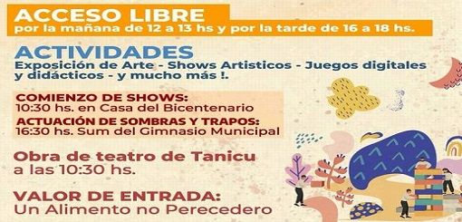 El evento se llevará a cabo en tres lugares diferentes: SUM del Gimnasio Municipal, Casa del Bicentenario y Atelier Cultural, el día martes 23 de abril, de 8.00 a 13.00 y de 14.00 a 18.00 horas, donde habrá stands de libros y juegos, exposición de arte y shows artísticos.