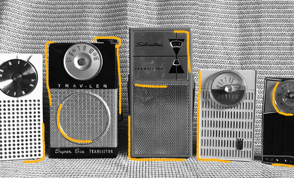A partir de la aparición de nuevos equipos a transistores, la forma y los espacios para sintonizar la radio cambian y permiten escucharla en la playa, en la calle, en la montaña.