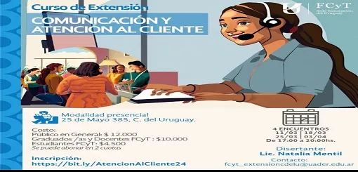 Los interesados en participar del Curso “ Comunicación y Atención al Cliente” pueden ingresar a la página o redes sociales de la Facultad de Ciencia y Tecnología de UADER o llamar al 03442 431442.
