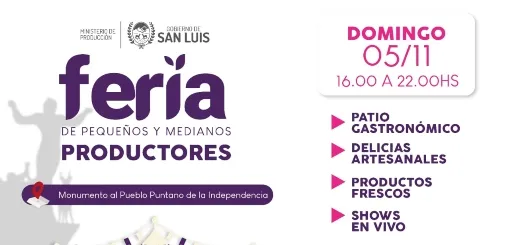 Lo mejor del emprendedurismo puntano estará nuevamente a disposición de los vecinos el domingo 5 de noviembre, fecha en la que el Parque Provincial “Campamento de Las Chacras” volverá a recibir a la Feria de Pequeños y Medianos Productores. El evento, que transcurrirá entre las 16:00 y las 22:00, contará con la presencia de productores locales, artesanos, patio gastronómico, Sol Puntano, juegos infantiles, show en vivo y sorteos.