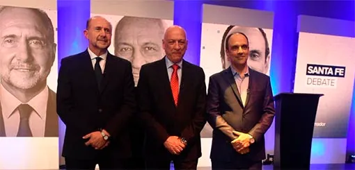 Los tres candidatos a gobernador de la provincia de Santa Fe debatieron este sábado por la noche en los estudios de Telefe Rosario con retransmisión de varios canales de TV de la provincia.