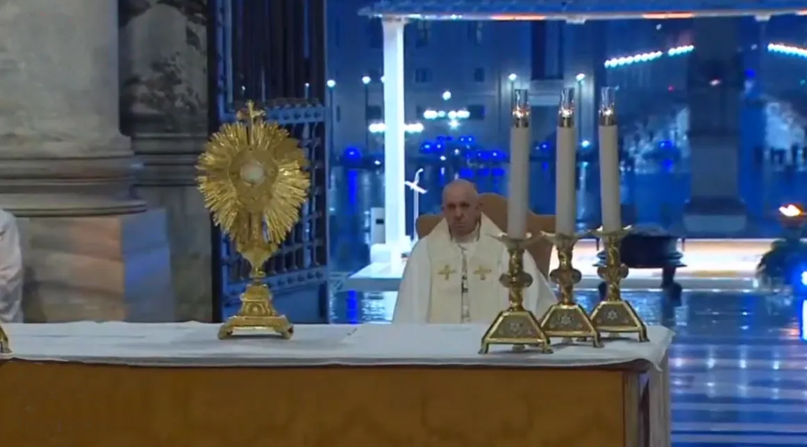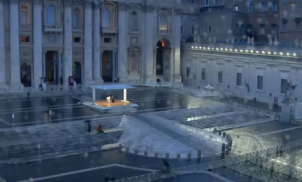 "Desde hace algunas semanas parece que todo se ha oscurecido", inició el pontífice su mensaje desde el atrio central de la Basílica de San Pedro, de frente a una plaza usualmente colmada por decenas de miles de fieles y hoy vacía por las medidas de seguridad adoptadas por el Vaticano durante la pandemia.