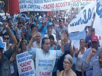 El Sindicato de Obreros y Empleados Municipales (SEOM) realizó un paro y movilización por diferentes reclamos al municipio capitalino que conduce Germán Alfaro. "La medida de fuerza consiste en el reclamo de la apertura de paritarias, ingreso de hijos de municipales, devolución de códigos de farmacia y de consumo diario. Conformar una comisión para el estudio del 82% para todos los empleados de la capital. El gremio determinó que hoy hay paro y movilización y participan 26 reparticiones. Hay un manoseo de la Municipalidad hacia los empleados", dijo Osvaldo Acosta, titular del gremio.
