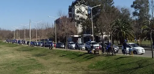 La caravana partió desde la defensa sur pasó por la Departamental de Escuelas y desembocó en la plaza Ramírez donde colocaron carteles con los reclamos en el centro cívico