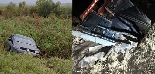 Mas tarde, cerca de las 8, en el km 83 de la misma ruta, asistieron a un hombre de 47 años, que viajaba en un Gol Trend, en sentido sur a norte, quien habría despistado al atravesar un espejo de agua, finalizando la trayectoria sobre la banquina.