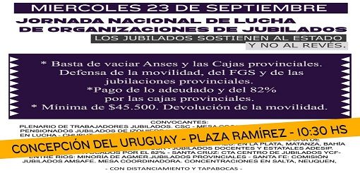 Jubilados autoconvocados se manifestarán mañana en Plaza Ramírez