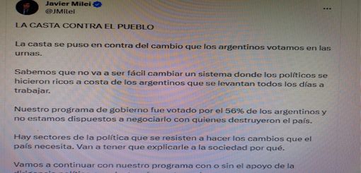 Milei: "La casta se puso en contra del cambio"