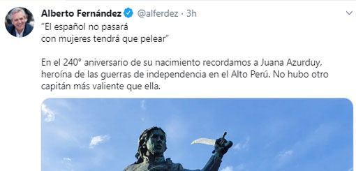 Alberto Fernández recordó a Juana Azurduy a 240 años de su nacimiento