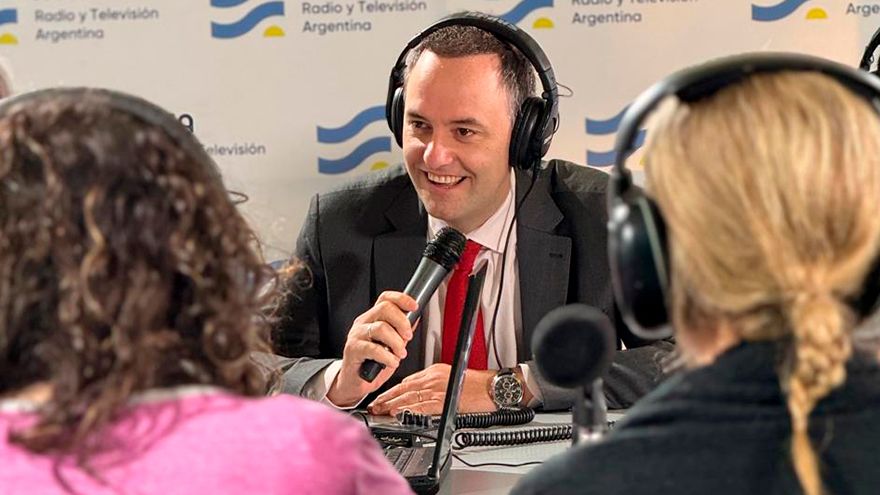 Manuel Adorni en el aire de Radio Nacional