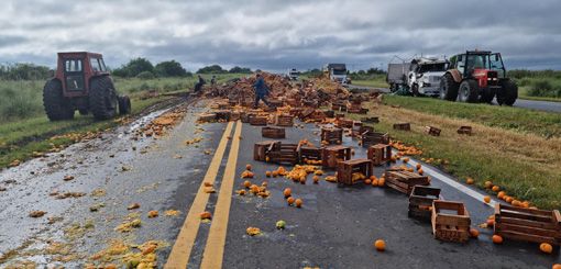 Volcó un camión cargado con frutas en la Ruta 171