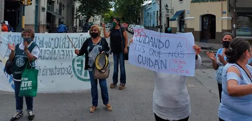 Operadores del área de Primera Infancia, dependiente del Ministerio de Desarrollo Social de Salta, se manifestaron ante la falta de cobro de haberes durante dos meses y la precarización laboral. Una de las trabajadoras de la localidad de Joaquín V. González dijo que cobra 28 mil pesos mensuales, a los que debe descontar el monotributo. Además no cobraron el bono de 10 mil pesos acordado por el Estado y los gremios estatales.