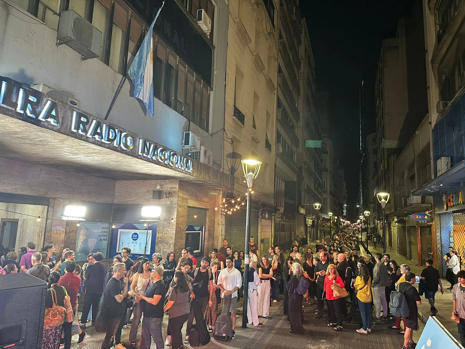 En tanto, hacia las 19 la fila de curiosos y oyentes de las emisoras que funcionan en el edificio ya doblaba la esquina de Lavalle mientras aguardaban su turno para participar de las visitas guiadas en las que locutores de AM 870 Radio Nacional, FM 93.7 Nacional Rock, FM 98.7 Nacional Folklórica y FM 96.7 Nacional Clásica contaban historias y anécdotas protagonizadas por históricos personajes de la radiofonía argentina en alguno de sus estudios.