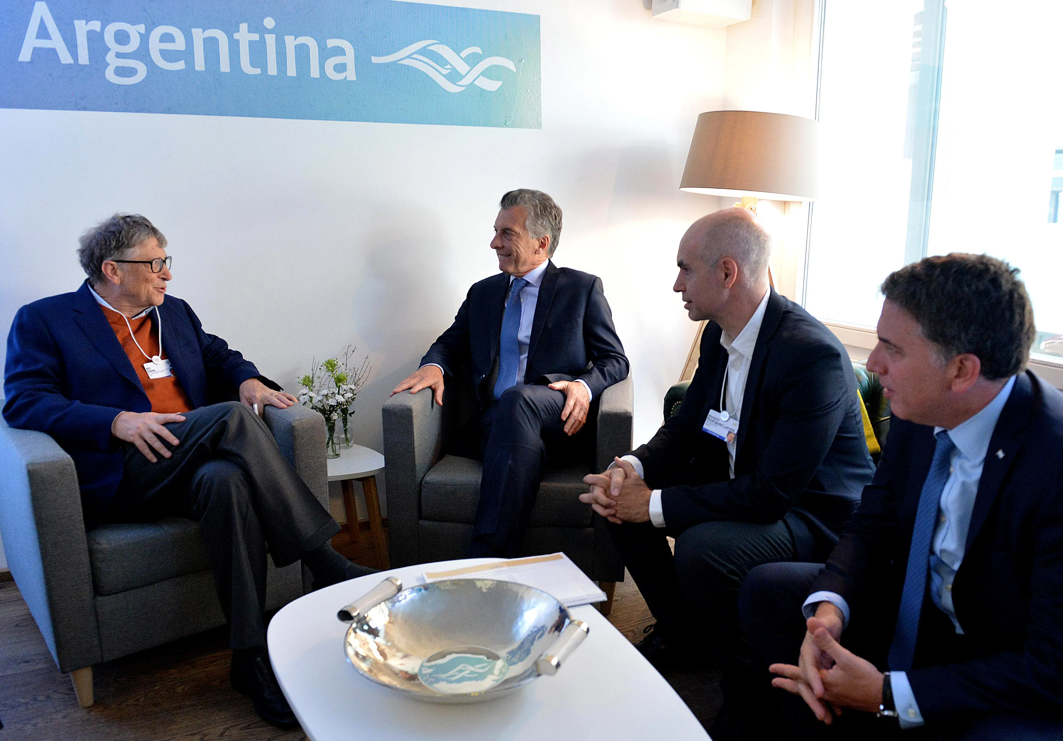 Los encuentros se realizarán en la "Casa Argentina", el café convertido en centro de operaciones del mandatario y punto de encuentro de la comunidad empresarial argentina e internacional en la pequeña villa alpina, por donde se espera que pase el CEO de Microsoft, Bill Gates.